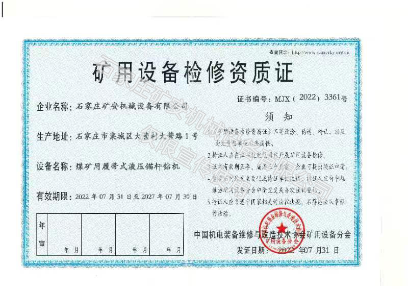 鉆機(jī)廠家認(rèn)準(zhǔn)礦安 Drilling rig manufacturer
